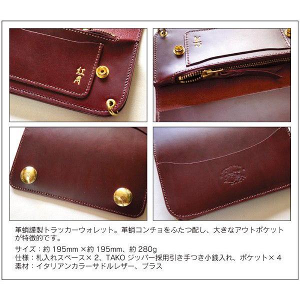 商品情報 サイズ:約195mm×約195mm、約280g 仕様:札入れスペース×2、TAKOジッパー採用引き手つき小銭入れ、ポケット×4 素材:イタリアンカラーサドルレザー、ブラス |