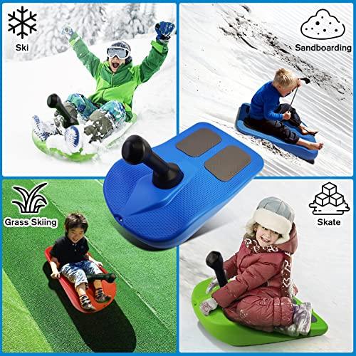 子供・大人用スノーソリ、ハンドル付き子供ソリスノーボード、軽量コンパクトスクータースノーボード、耐寒ハンドルソリ滑降滑降スノースケートボードで冬の 子供 大人用スノーソリ ハンドル付き子供ソリスノーボード 軽量コンパクトスクータースノーボード