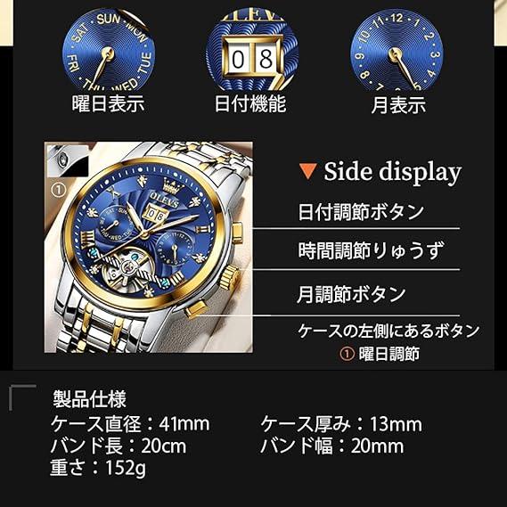 商品情報 【おしゃれなメンズ腕時計】機械式(メカニカル)だからこそ出せる金属文字盤、独特な文字盤デザインで高級感を引き出します。スケルトンの裏ぶたで機械式ならではの時計の動きをお楽しみいただけます。 【ビジネスに相応しい質感】こだわりのレザー模様文字盤、ローマ符号インデックス、メンズ腕時計の魅力が感じられます。定番のグリーン、ブラック、ブルー、大人気デザインです。 【時間の確認は簡単に】針は太陽光や室内照明などの光を蓄え、暗い所で発光しする夜光塗料を使用です。カレンダー機能を加え、便利な自動巻き腕時計です。 【生活防水機能】3気圧格防水機能、思いっきり濡らしても汗と雨に問題ありません。 【使用】弊社はお客様に多様、各年齢が適用する腕時計を提供することを努力致します。世界に進出中の我社、商品の品質は世界中に好評を貰えています。万が一不良のとき、で購入した商品は30日交換付き、3年故障修理、どうかお安心に下さい。使用上の問題、ご不明な点もお気軽に問い合わせください。 【ご注意】 ・・・(続きは商品説明をご覧ください) |