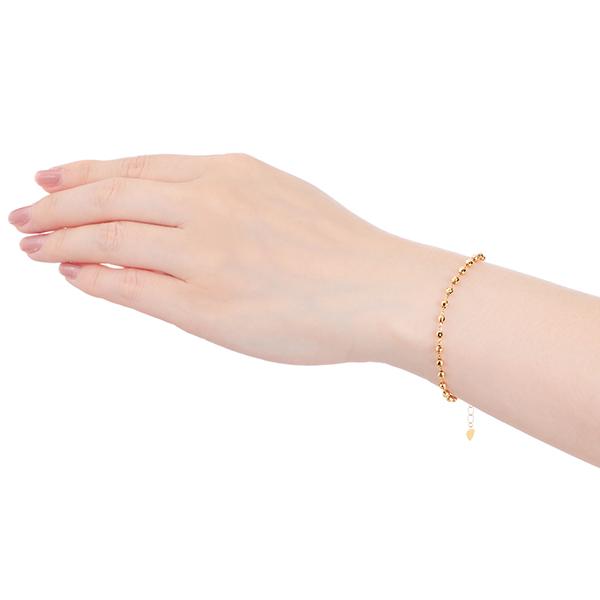 商品情報 K18の華やかさと上質な質感が魅力のブレスレット。 全周にセットされたミラーボールが煌めき、手元を華やかにしてくれます。 程よい存在感で、コーディネートのアクセントにおすすめです。 地金素材:K18YG 長さ:約18cm(アジャスター含む) 幅:約2.5mm |