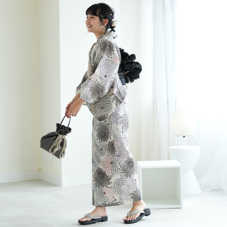 浴衣 レディース セット(浴衣 帯 下駄) セパレート utatane 古典柄 レトロ 大正ロマン 花 高級変わり織 二部式浴衣3点セット 先染め風ベージュにモダン糸菊 浴衣 帯 下駄