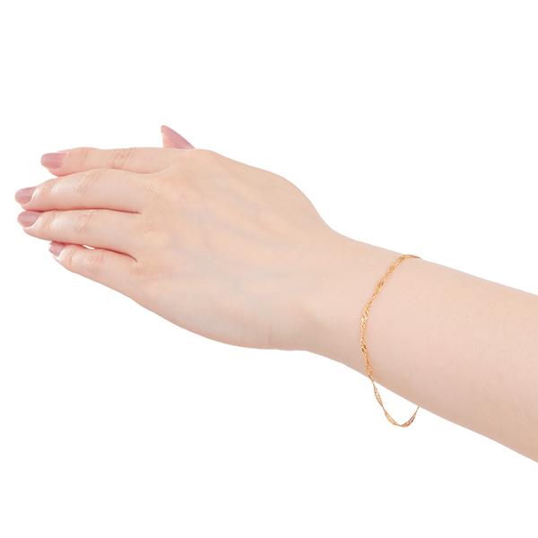 商品情報 スクリューチェーンのブレスレット。 動くたびに輝き、手元を美しく見せます。 シンプルなので、重ねづけにもぴったりなアイテムです。 お揃いのネックレス、アンクレットもあります。 地金素材:K18YG 長さ:約18cm 幅:約1.8mm |