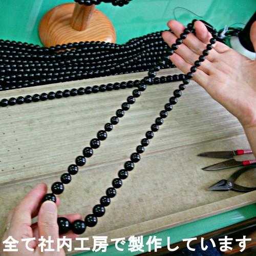 最高級 天然 ジェット ネックレス フォーマル 10mm花彫入、8mm丸玉 45cm 10年保証付 jn8791-45 葬儀 法事 弔事 NoirJet ノアールジェット