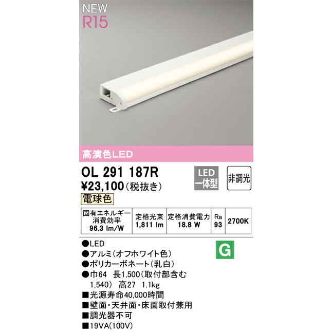 商品情報 消費電力18.8W Ra93 LED ルミ(オフホワイト色) ポリカーボネート(乳白) 巾64 長1500(取付部含む1540) 高27 1.1kg 光源寿命40000時間 壁面・天井面・床面取付兼用 調光器不可 その他 薄型タイプ(簡易幕板付) |